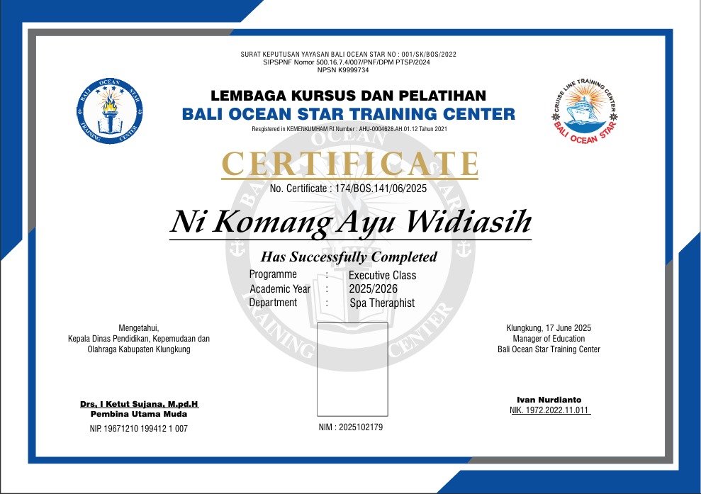 ALL CERTIFICATE IS VALID FROM BOSTC SearchSearch Standley – 320310161197 See Certificate Ayu – 320310161196 See Certificate Tommy – 320310161195 See Certificate